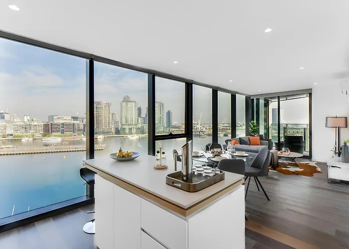 Aerie Stays Newquay Collection メルボルンアパートは、Flinders Street 鉄道駅から3.2キロメートルで、ザ ディストリクト ドックランズから歩いてたった6分の場所にあります。 川の景色を望むテラスを提供するこのアパートは、アーヴォー少し離れたです。